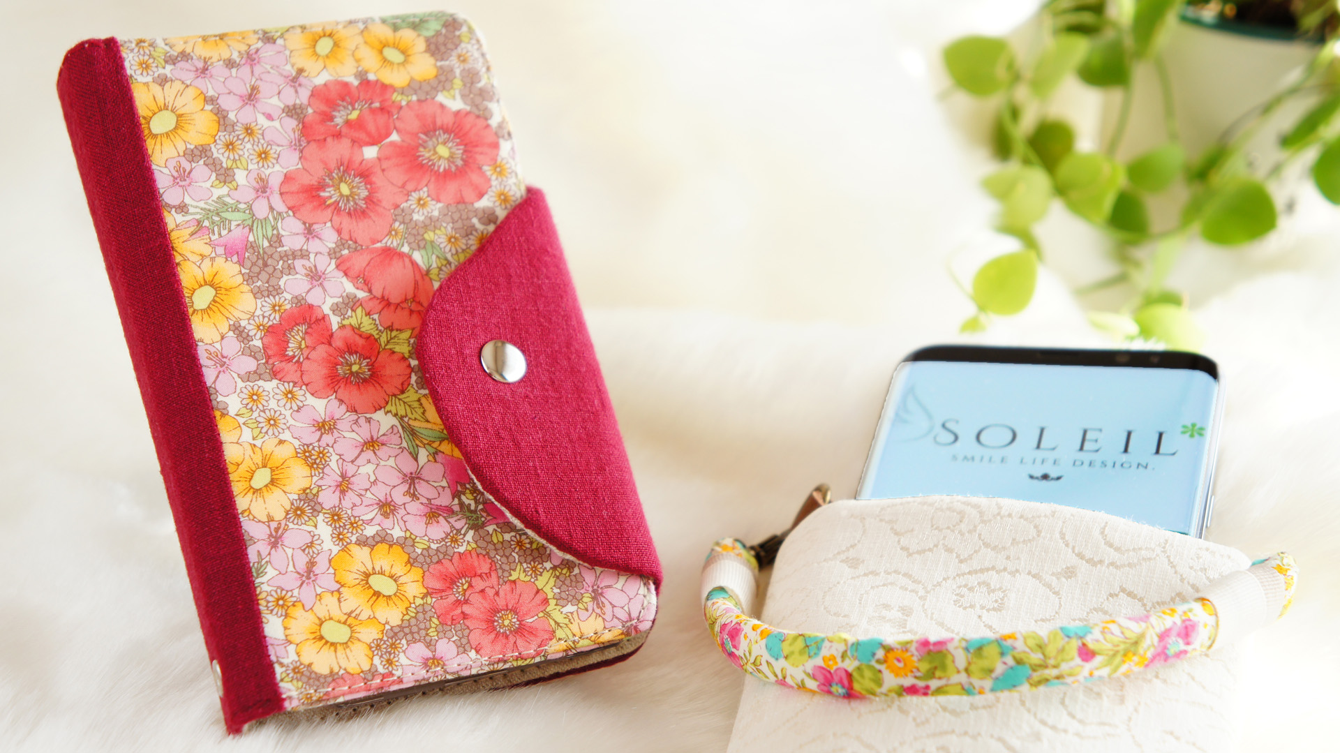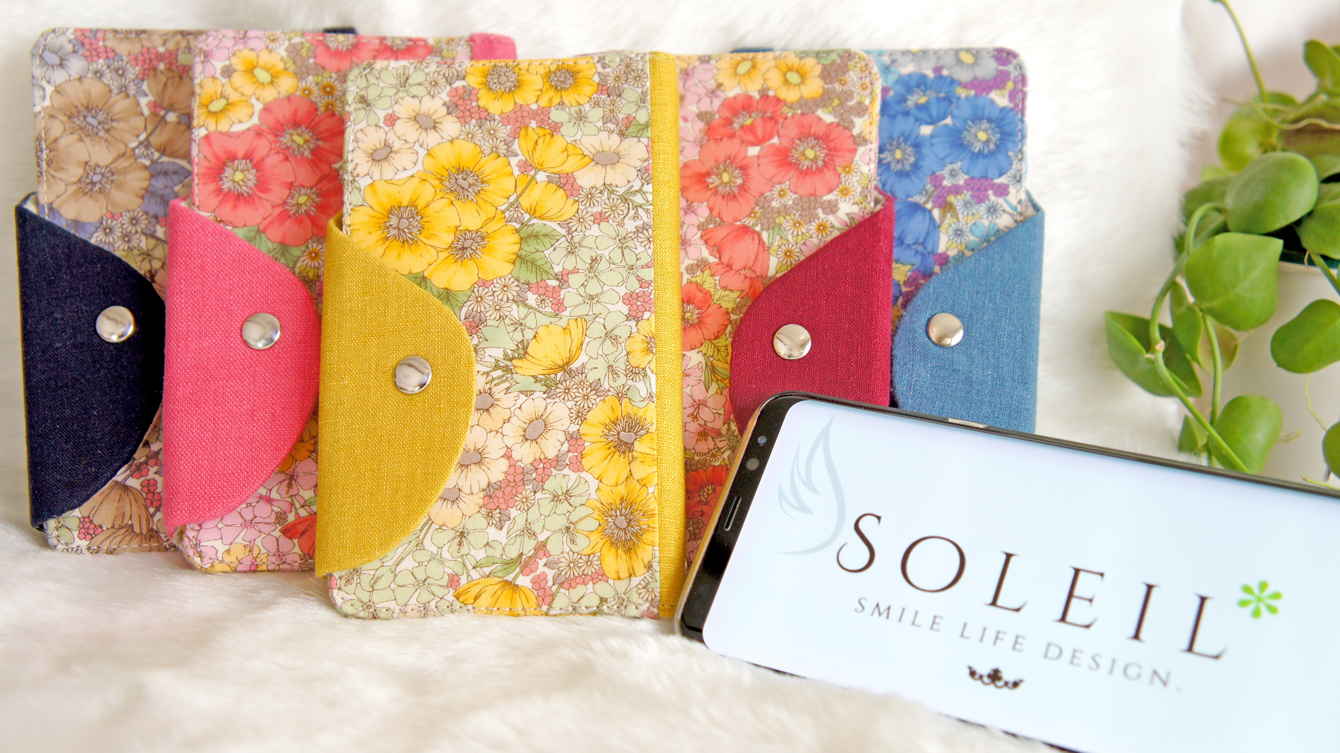 SOLEIL*の新ブランドその名は、『eleppo(エレッポ)』 今回、SOLEIL*が、オリジナルで型紙をCADで作成し、商品を作りあげました エレガントにスマートフォンがスッポリ入るスマホケースということを、コンセプトに考え 商品名をつけました 『eleppo(エレッポ)』の言葉は、SOLEIL*が、オリジナルで考えて作った言葉です この商品は、手帳型とポーチ型があります