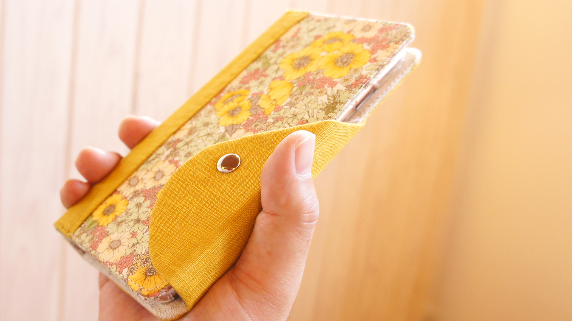 リネンやリバティの布をあしらい、手作りのスマホケースを制作しております。